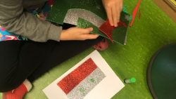 Mehrere Kinder hatten auch Fotos oder andere Dinge aus ihrem Herkunftsland oder von Urlaubsreisen mitgebracht. Anschließend wurden u.a. Länder-Flaggen gebastelt.