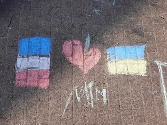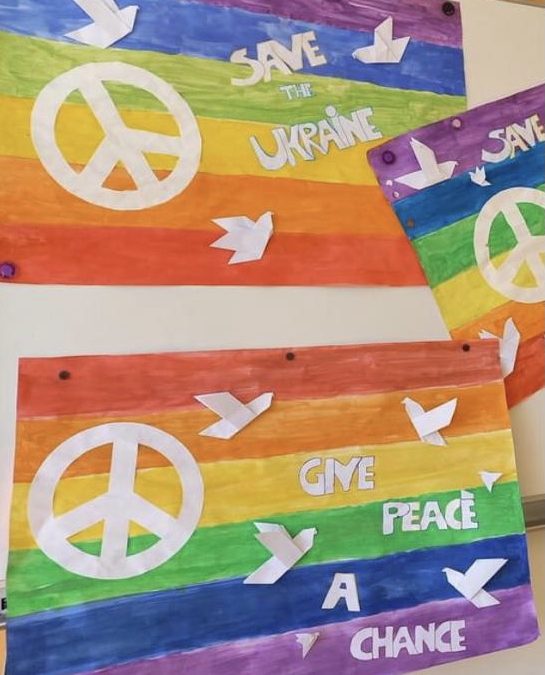 Alle Klassen haben sich auf vielfältige Weise mit dem Krieg in der Ukraine beschäftigt. Es wurden Bilder gemalt, Fragen gestellt, Ängste geäußert und viel diskutiert. Die Lehrerinnen und Lehrer haben versucht, dem Thema altersangemessen Raum zu geben, Fragen zu beantworten und Ängste zu nehmen.