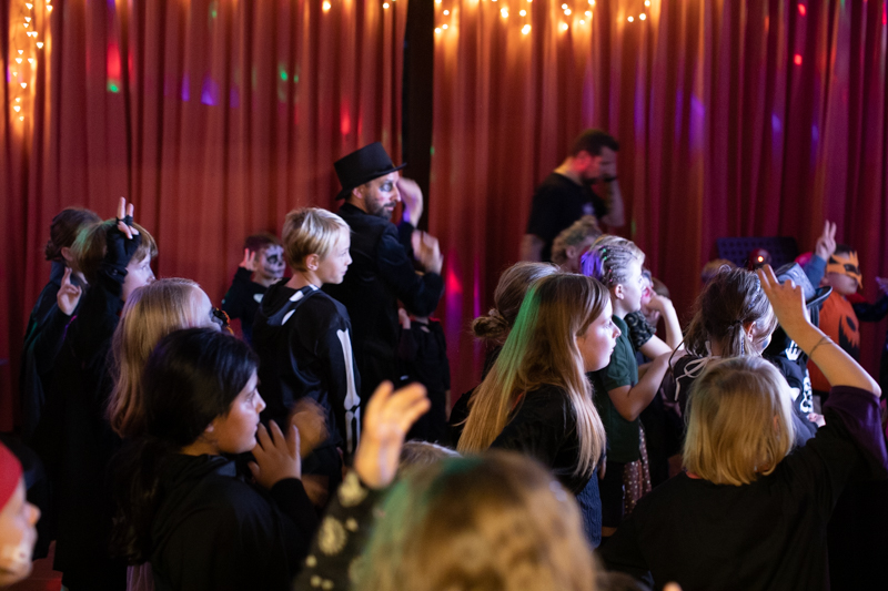 Bei einer richtigen Party wird natürlich auch getanzt und das wurde es auch bei uns. Die Skelette klapperten um die Wette, die kleinen Hexen sausten durch die Gegend und selbst den gruseligste Geist hielt es nicht in seiner Kiste!