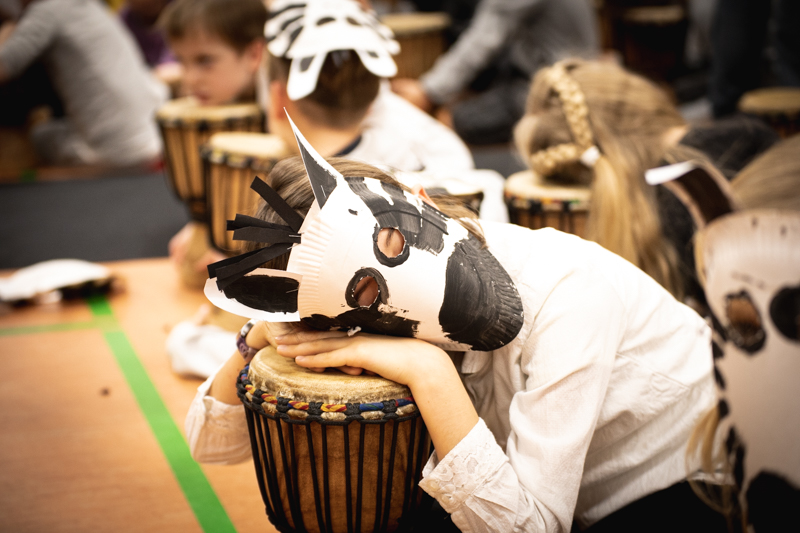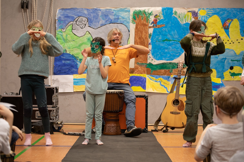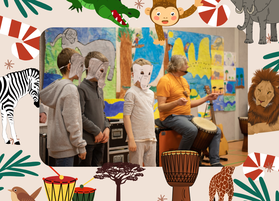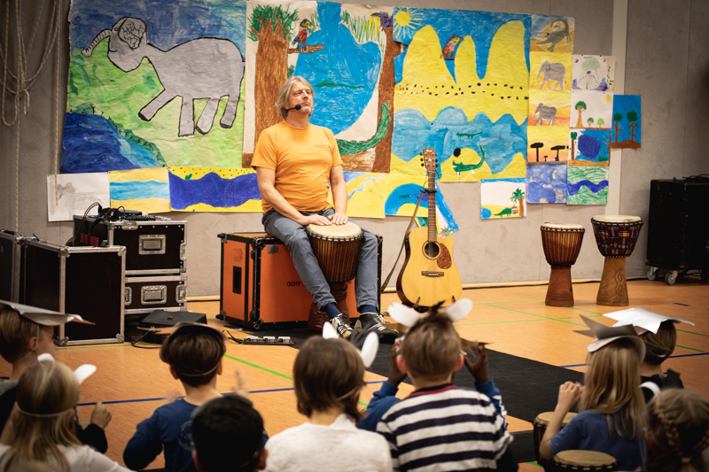 In der letzten Schulwoche erwartete uns dann noch ein ganz besonderes Projekt – wir hatten Besuch von Bernhard und seinem Trommelappplaus!