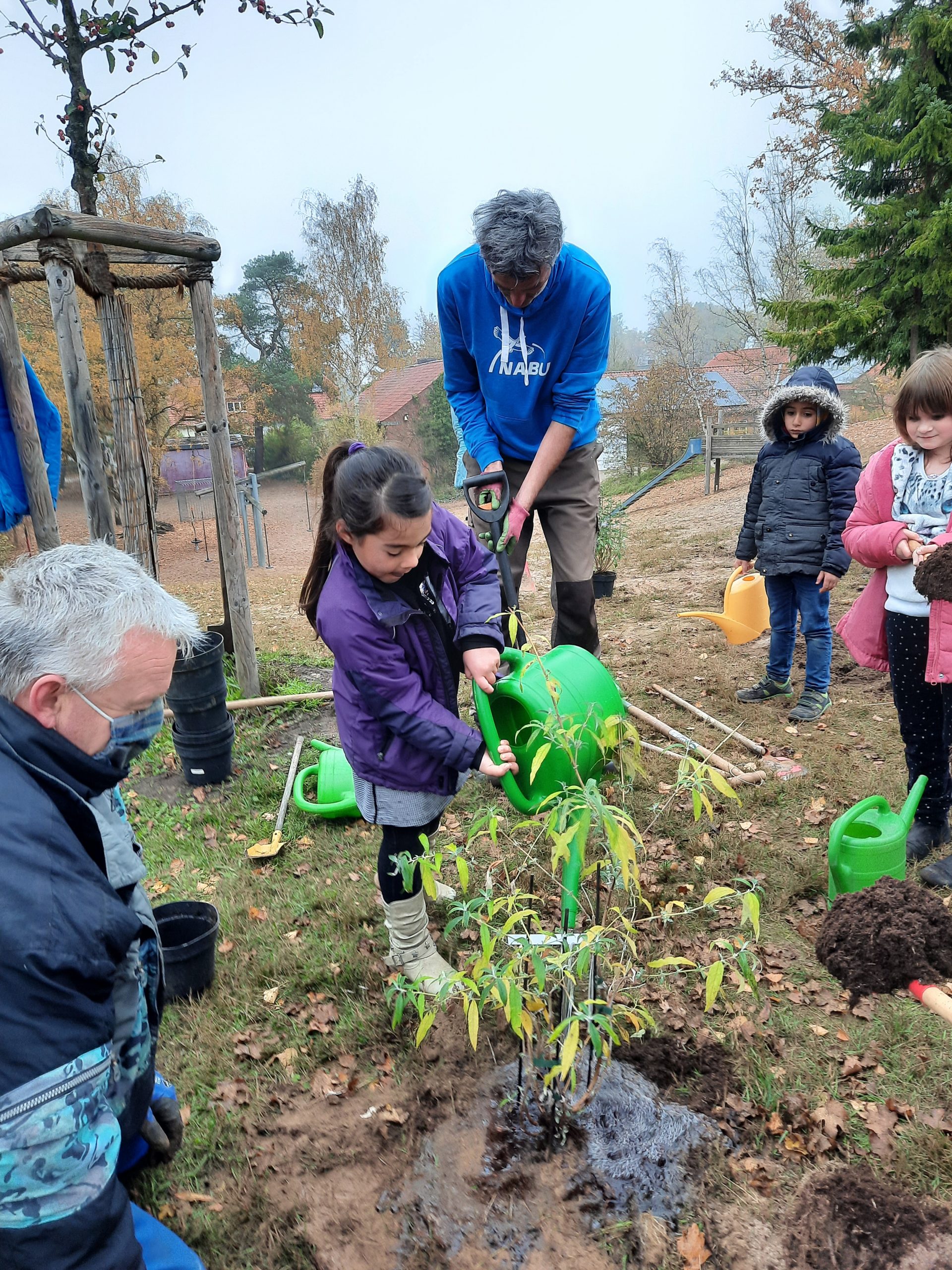 Am 11.11.20 hat die Klasse E1 zusammen mit dem NABU auf dem Schulgelände einen Apfelbaum und viele insektenfreundliche Sträucher gepflanzt. Weitere Pflanzungen sind im Frühjahr 2021 geplant. Die Aktion findet im Rahmen einer Spende der SchülerInnen (Einnahmen vom Weihnachtsmarkt 2019) an den NABU Lüneburg statt. Die Kinder möchten damit einen Beitrag zum Naturschutz leisten.